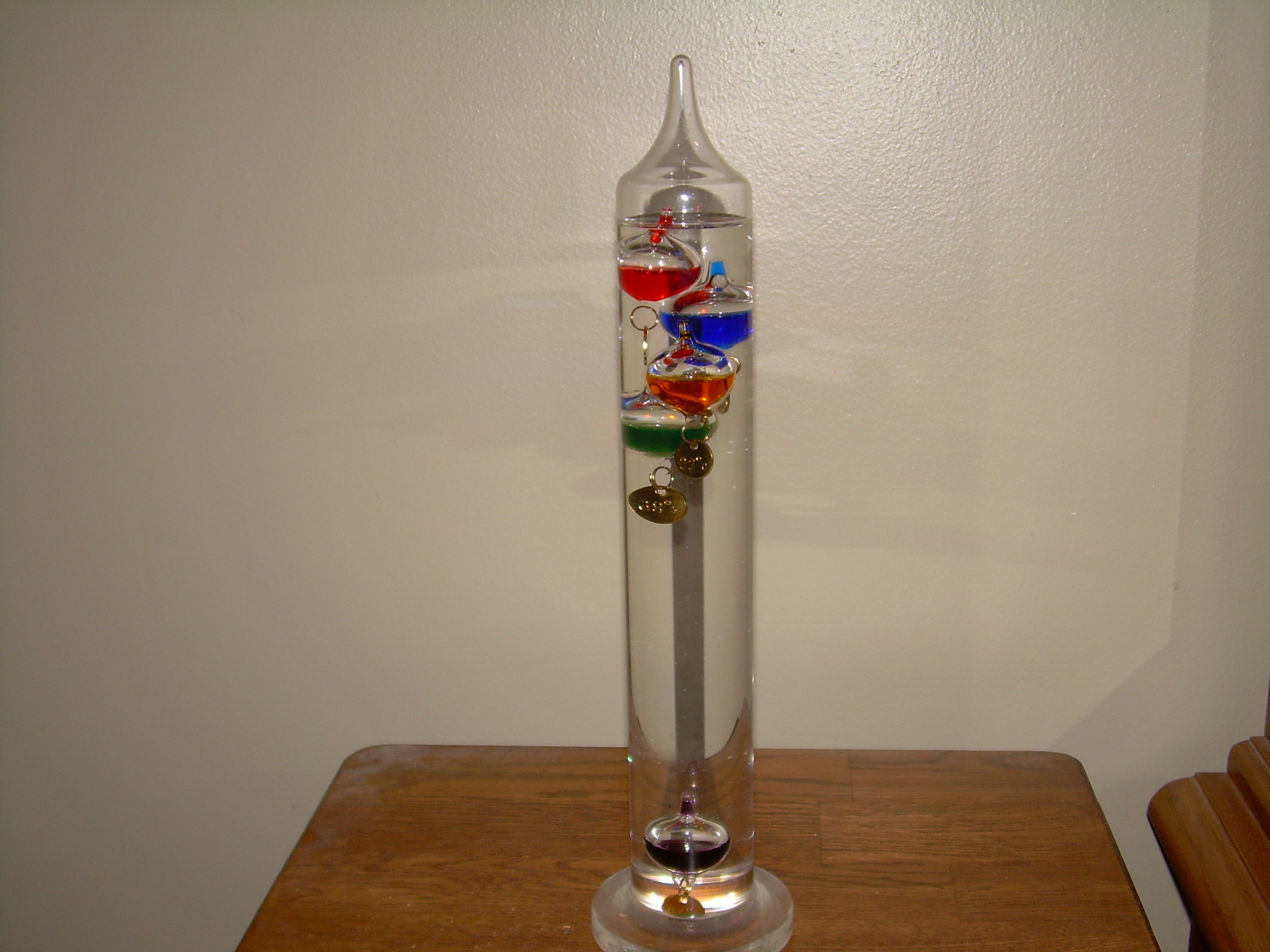 My Galileo thermometer lets me know when the temperature changes.
