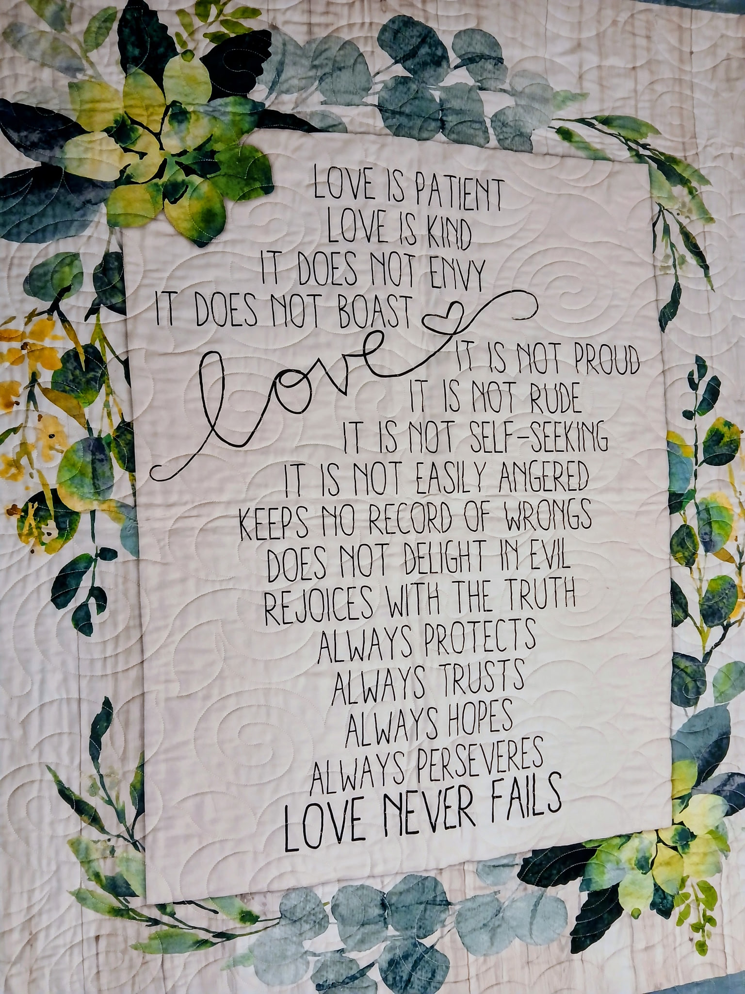 My sister-in-law, Lana, who lived in Dahlonega, Georgia, with my brother, Rob, also fell in love with quilting. I’d seen many of the quilts she created for family and friends. Four years ago, my husband and I were honored when she surprised us with a beautiful tapestry for our 50th anniversary.
